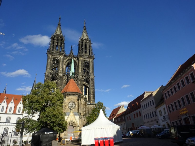Ścieżka wjeżdża prosto do Miśni, ale żeby największą atrakcję zobaczyć na potężną trzeba się wdrapać górę. PO BRUKU!